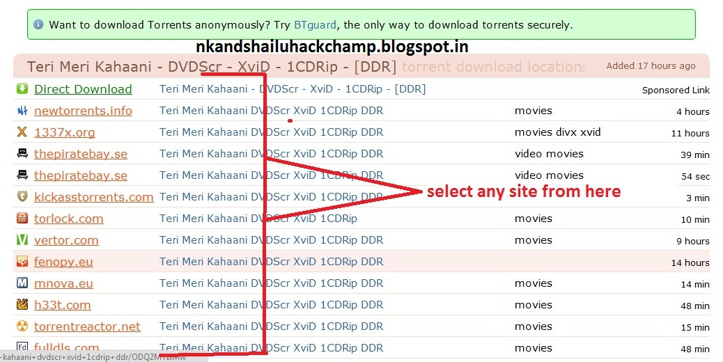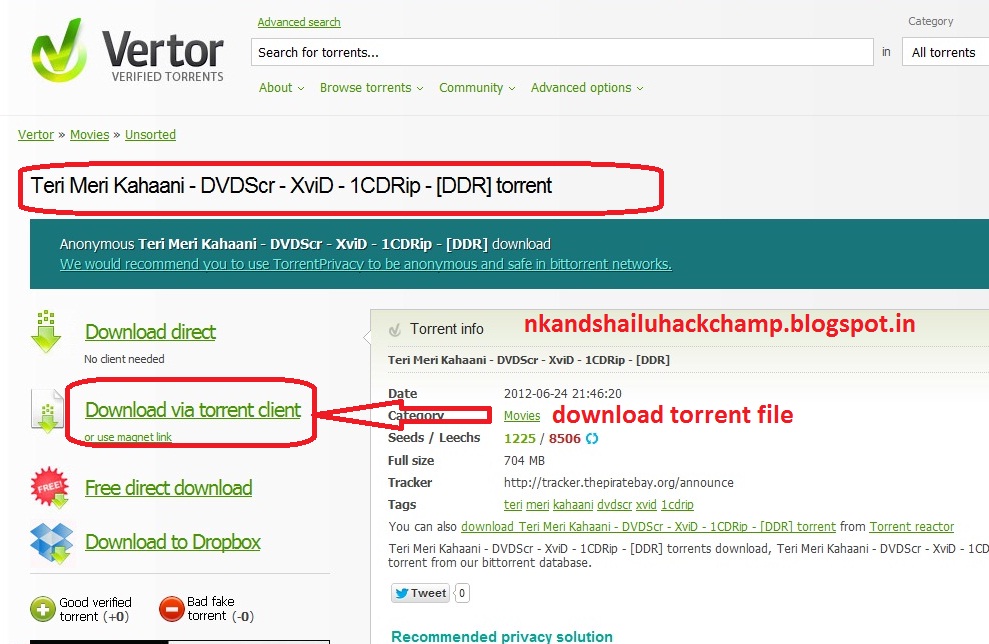 - Download torrent file from that site