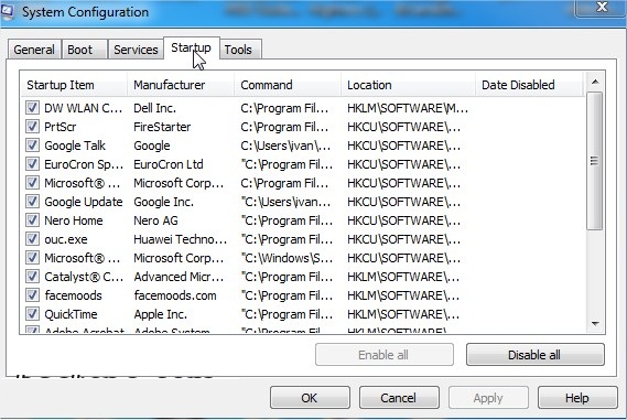 2) Select the Startup tab and uncheck the programs you don’t want to start during startup. Click on Apply , then OK .